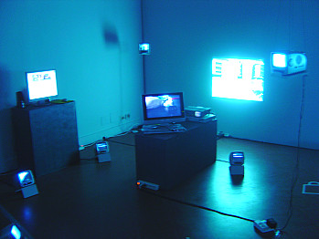 Davide Grassi's virtual parliament "DemoKino" brings the participation in the form of an anti-entertainment event that includes TV-voting, SMS-voting or streaming live over the Internet. Based on eight short interactive films in which the protagonist reflects upon bio-political questions (abortion, cloning, GMO food etc), viewers, as potential voters, are invited to react according to their own opinion with a "yes" or a "no" to the issues presented. Bojana Kunst wrote: "The project questions not only the utopia of contemporary virtual forum that is supposed to open ways for a more direct and influential participation but also points out a much deeper problem of modern democracy (virtual as well). With its reduced narrativeness - the story is built on the "pro and contra" inner dialogues of the protagonist who is led around his home in a parliamentary kind of way by the "voters", based on their decisions - Demokino shows how these ethical dilemmas of modern life suddenly become the core of our political participation." ("Virtual Biopolitical Parliament, Davide Grassi's DemoKino", by Bojana Kunst, 2003)