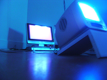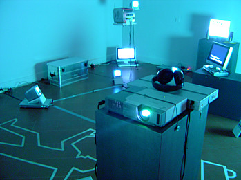 The topic of performativity in the physical and virtual spheres was considered in several projects by Marko Kosnik. For example, Paparapapa (1998) was a continuous one-week performance by actors located in Frankfurt, Paris and Ljubljana, synchronized via real time video/audio transmissions over the Internet.