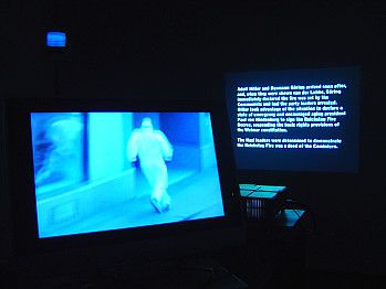 The project is described as "a capital-free zone laboratory maintained by a group of multimedia artists and theoreticians. It is programmed to mine a corpus of cells for associated strategies or connections (linking between concepts as a tactic) -- like connections between two unrelated concepts". The group's actions, interventions and performances operate in various physical and geographical locations (Ljubljana, Graz, Venice, Bordeaux), as well as in most existing media and distributive contexts (Internet, magazines, national and commercial TV channels). The accidental present audience, unaware of the actual artistic codification and context of these events, as well as the audience later on directed to the documentation of the events, is confronted with the group's tactical manipulations of the thin line between real-time inserted fictions and constructed realities (in Graz, for example, the visitors and guards in the Kunsthaus encountered two men, one of whom claimed to suffer from electrical hypersensitivity - a certified medical disease that causes symptoms of weakness, headache, and chest pain or heart problems when exposed to electromagnetic fields. The man attended the museum in a special protective suit that shielded him from the electromagnetism generated by the artworks in the exhibition. The two men navigated with care through the exhibition, explaining and bantering with guards about the technical aspects of each work in the exhibition). The documentation of the events furthermore questions the basic dilemma surrounding the truth and lies spread through various media networks and PR politics.