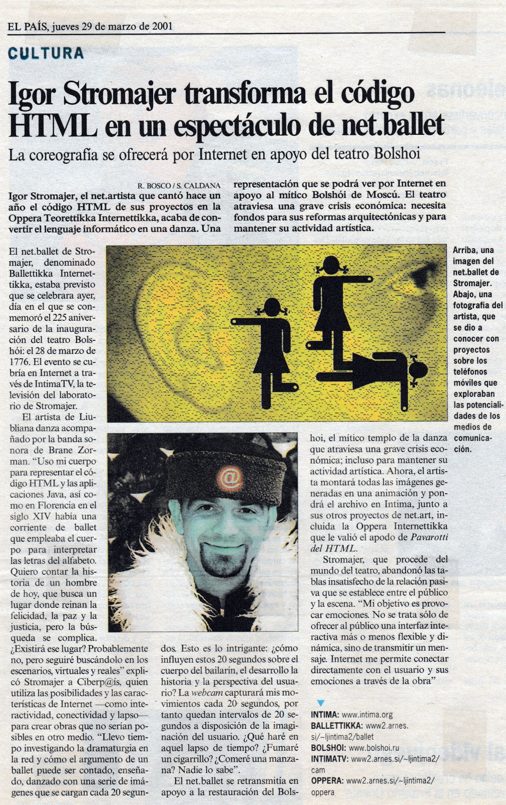 [El Pais - Roberta Bosco & Stefano Caldana, 29 Mar 2001; Espana]