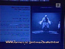 On Wednesday evening this week there was a live net cast performance of "Ballettikka Internettikka | Part One" a net.ballet danced by Igor Štromajer, with music composed by MC Brane - Brane Zorman. The performance was captured as a video archive which can still be viewed online. The effect was like a cross between semaphore signalling, "the dancer's body was used at the beginning of the ballet to perform different alphabetical characters"2*, and black and white silent film melodrama with electronic musical accompaniment. The ballet is a sequel to the "Oppera Teorettikka Internettikka" (Ljubljana, March 1999 - Opera and Ballet of the Slovenian National Theatre) in which Štromajer sang a score consisting of the " HTML code of his net art projects"3*. The score and sound document from this event are also online. The second part of Ballettikka Internettikka will be performed in Moscow in Spring 2002.